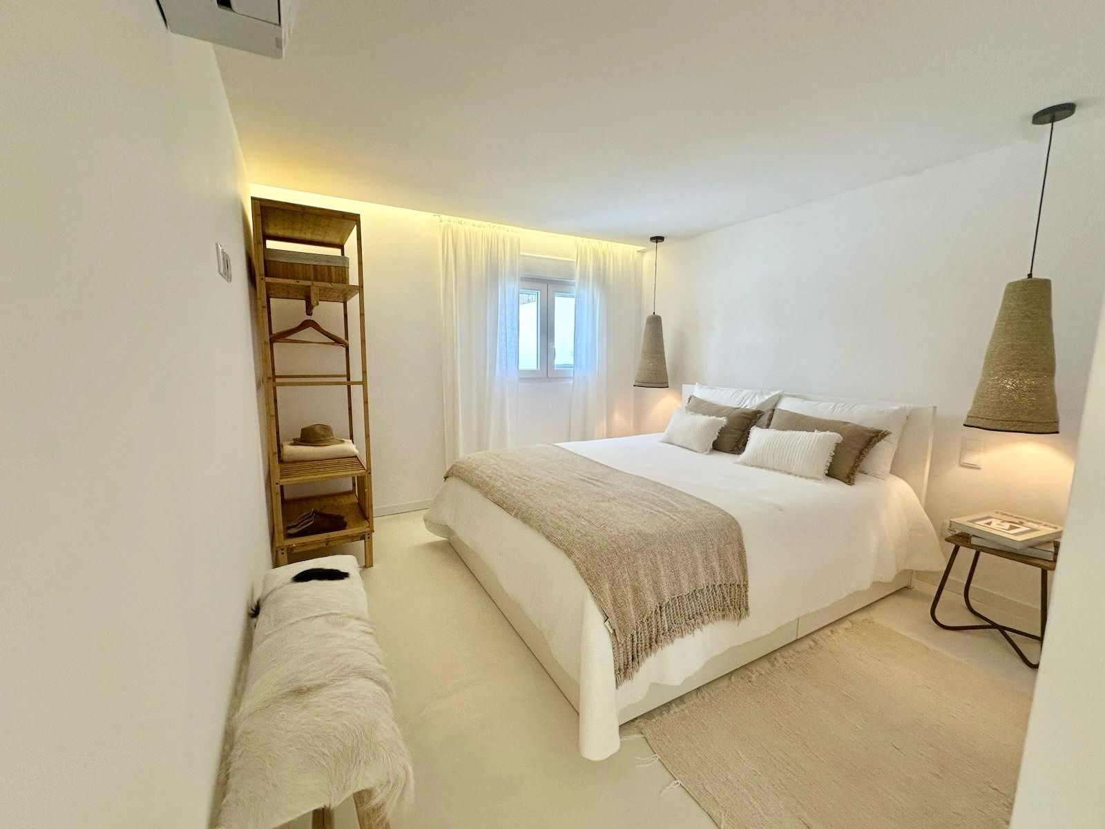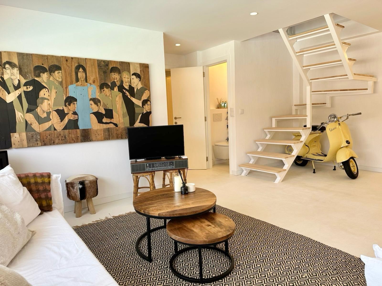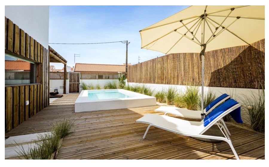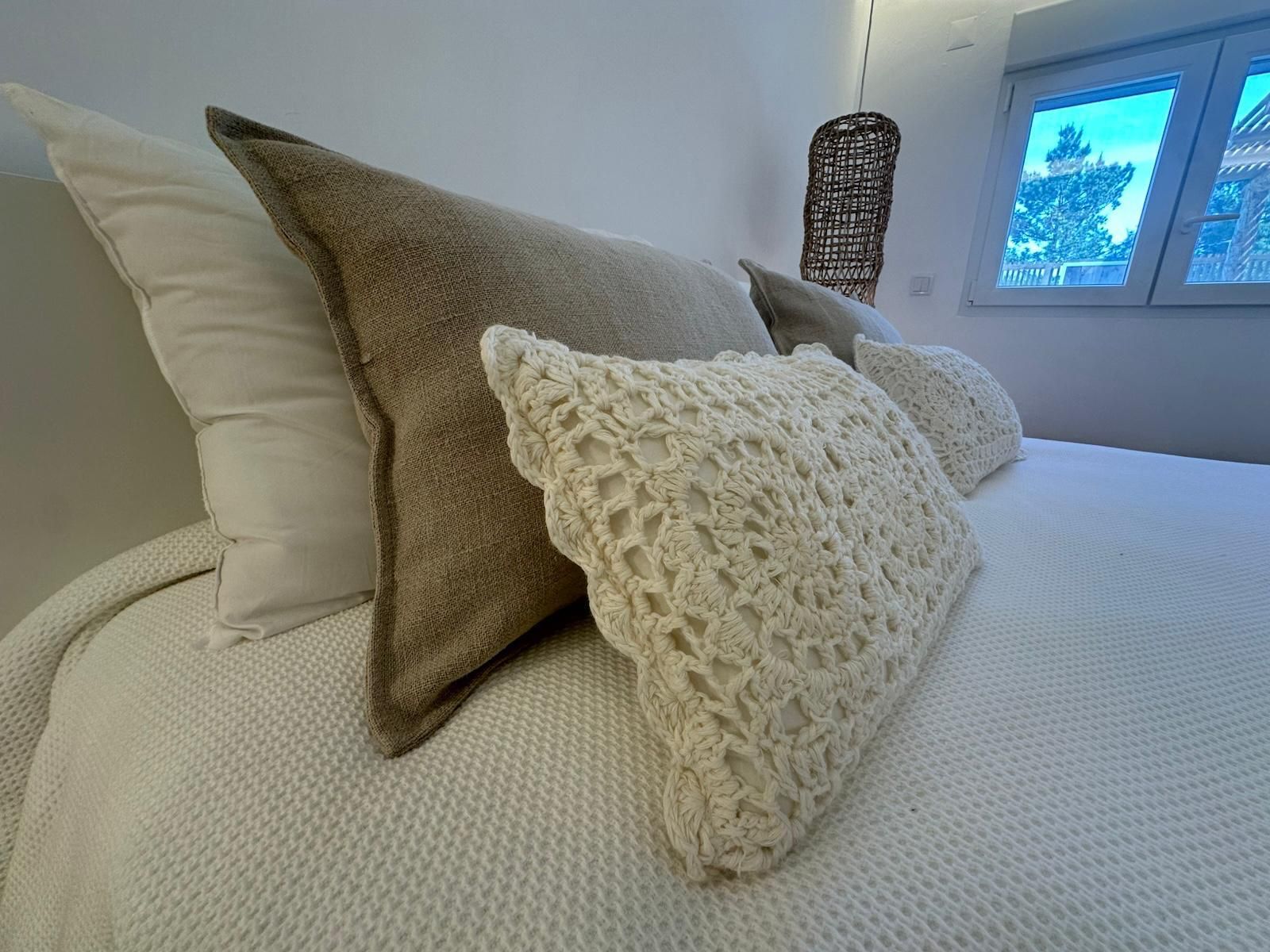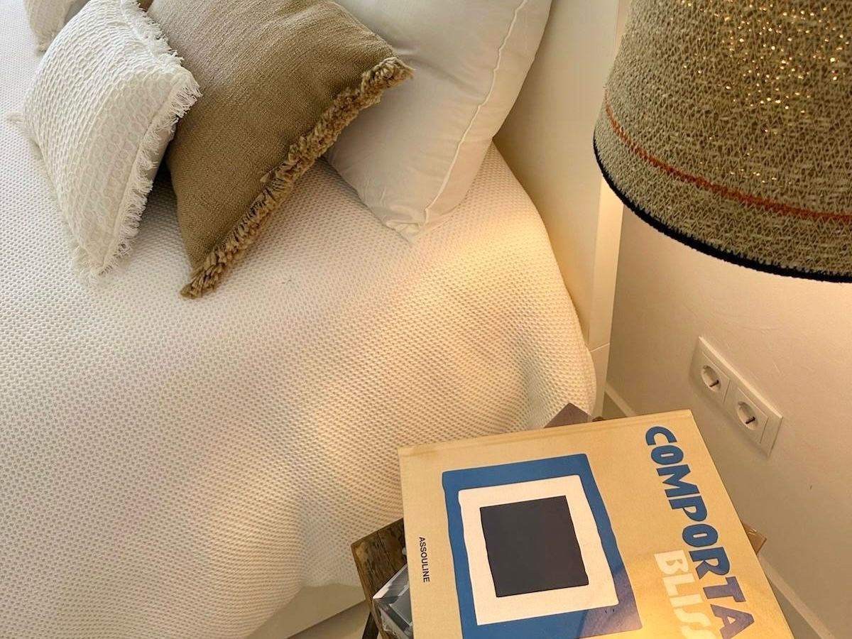 La maison, d'une superficie d'environ 140 m², est répartie sur deux niveaux. Le rez-de-chaussée comprend deux suites, une salle de bains pour les invités, un salon et une cuisine. Cette dernière est entièrement équipée d'appareils Smeg vintage série 50, dont un four de 90 cm avec plaque à induction et tiroir chauffant. Les finitions sont en microciment et en pin naturel.