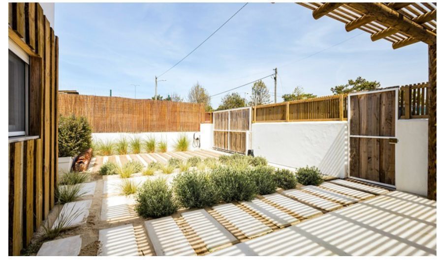 Le terrain, d'une superficie totale de 257 m², est aménagé pour créer des espaces variés permettant de profiter au maximum de cette maison, notamment un espace repas extérieur, un espace piscine de style méditerranéen avec un banc pour profiter des journées ensoleillées, un espace barbecue privé et un garage avec bornes de recharge pour véhicules électriques.