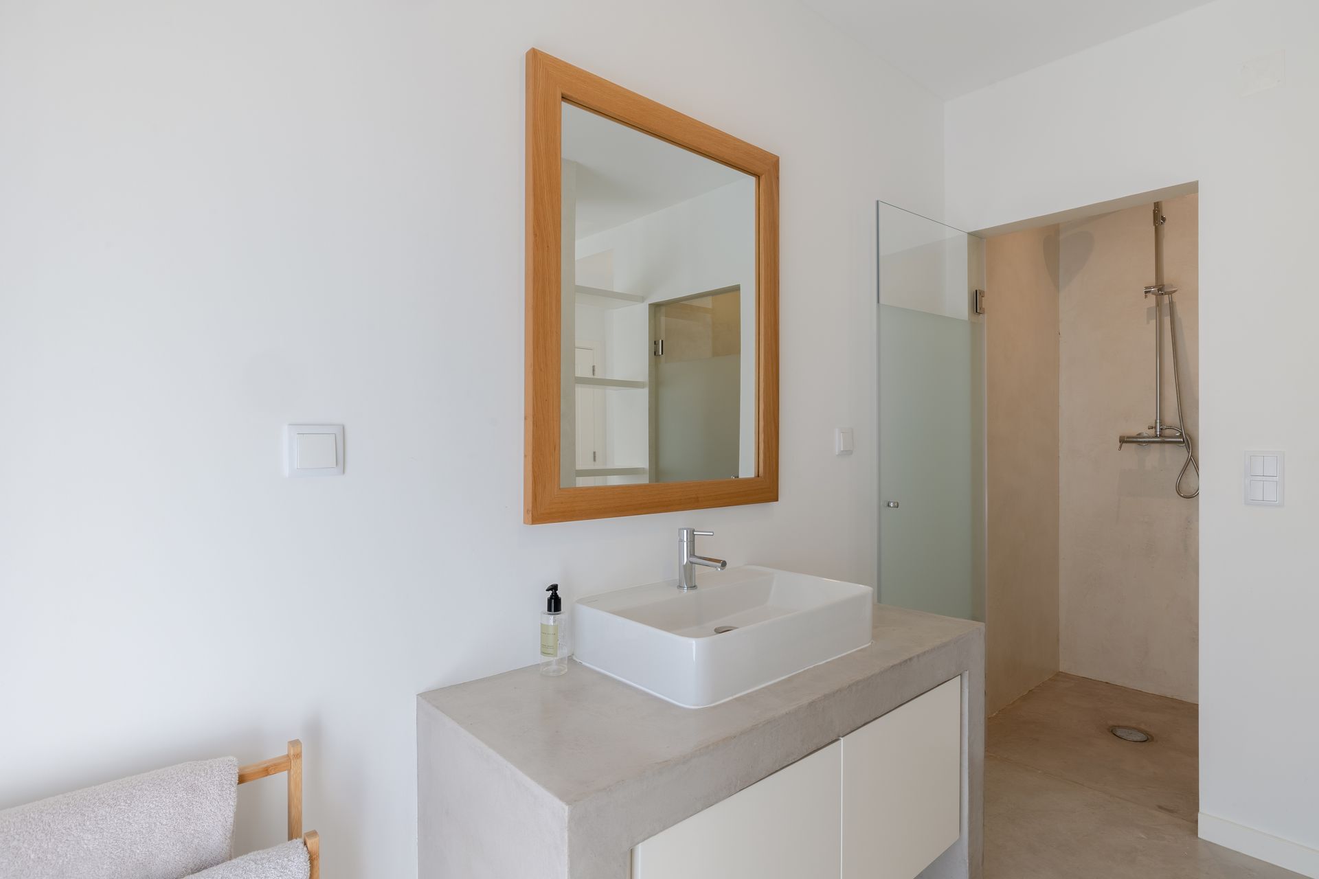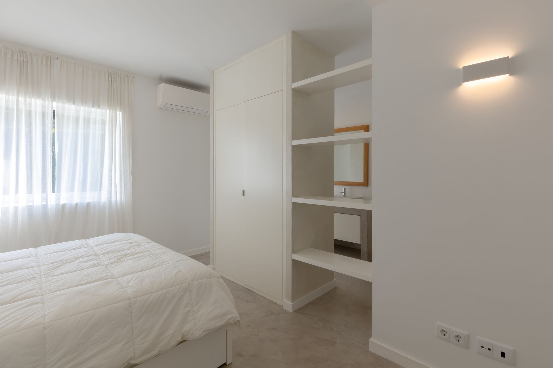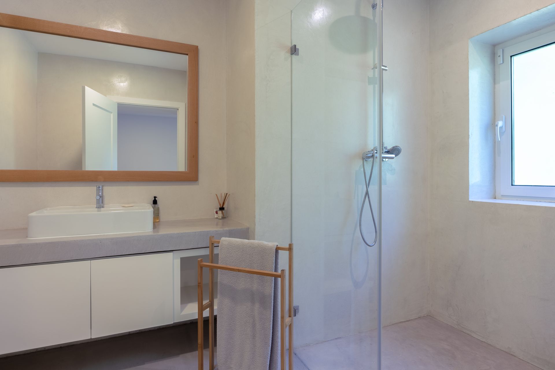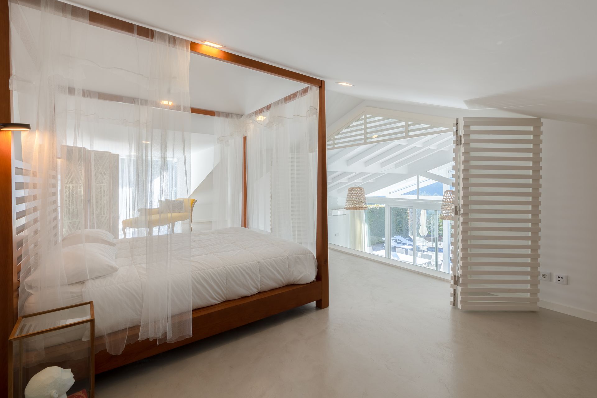 Na cozinha encontra uma ilha funcional e epaço de balcão com máquina de lavar e secar roupa, máquina de louça ambas Samsung, frigorífico de encastre, placa e ainda filtro de água no lavatório. Por toda a casa os cabamentos são de qualidade referindo o chão em microcimetno, ar condicionado em todas as divisões e lareira com recuperador de calor. No piso superior temos uma suite ampla com vista para a sala e para a paisagem uma vez que está em forma de mezzanine com a sala para favorecer a vista e a claridade. Existe também uma zona consideravél de aproveitamento de espaço transformada em arrumos.