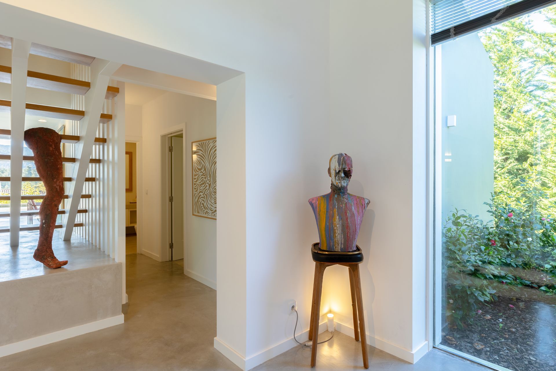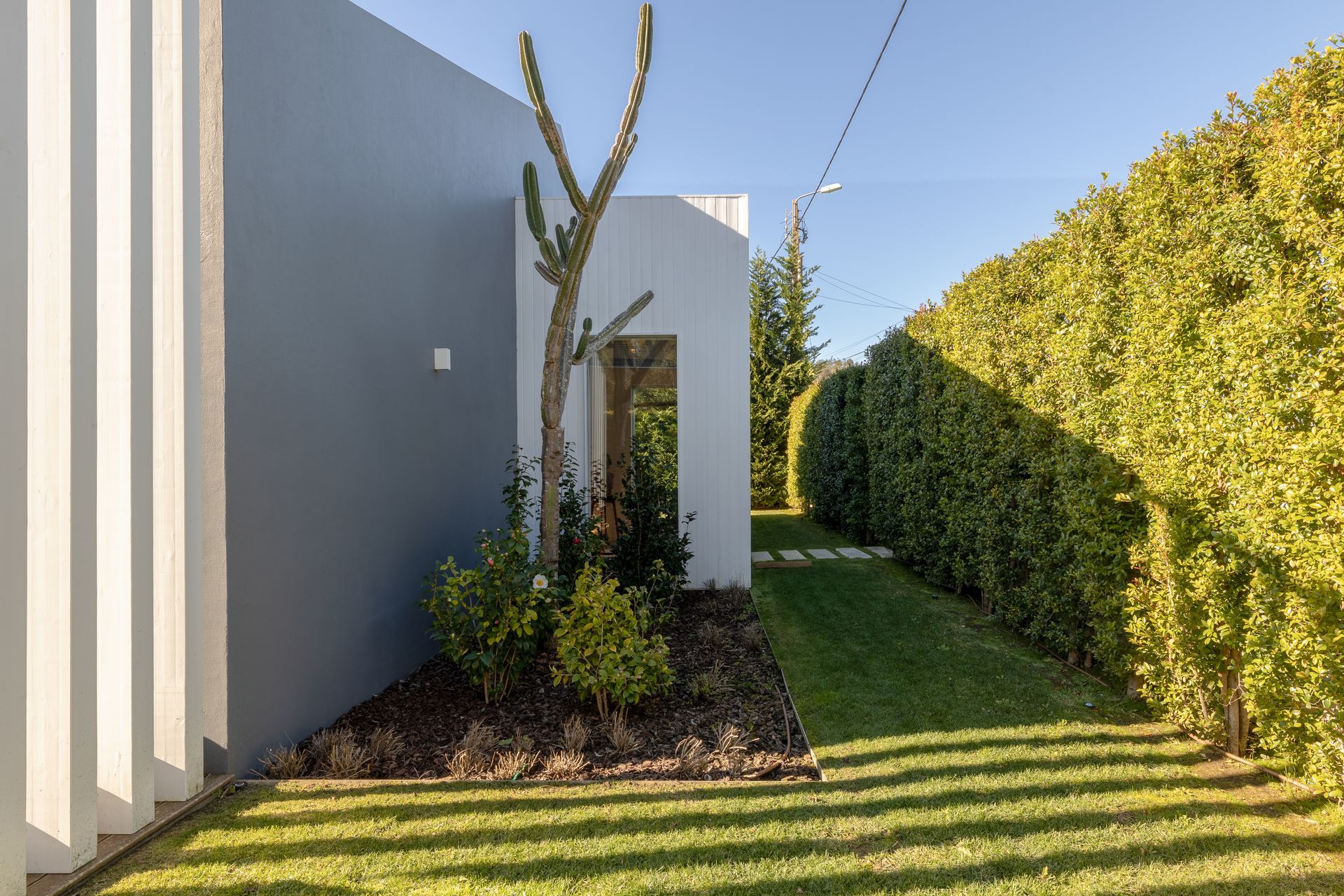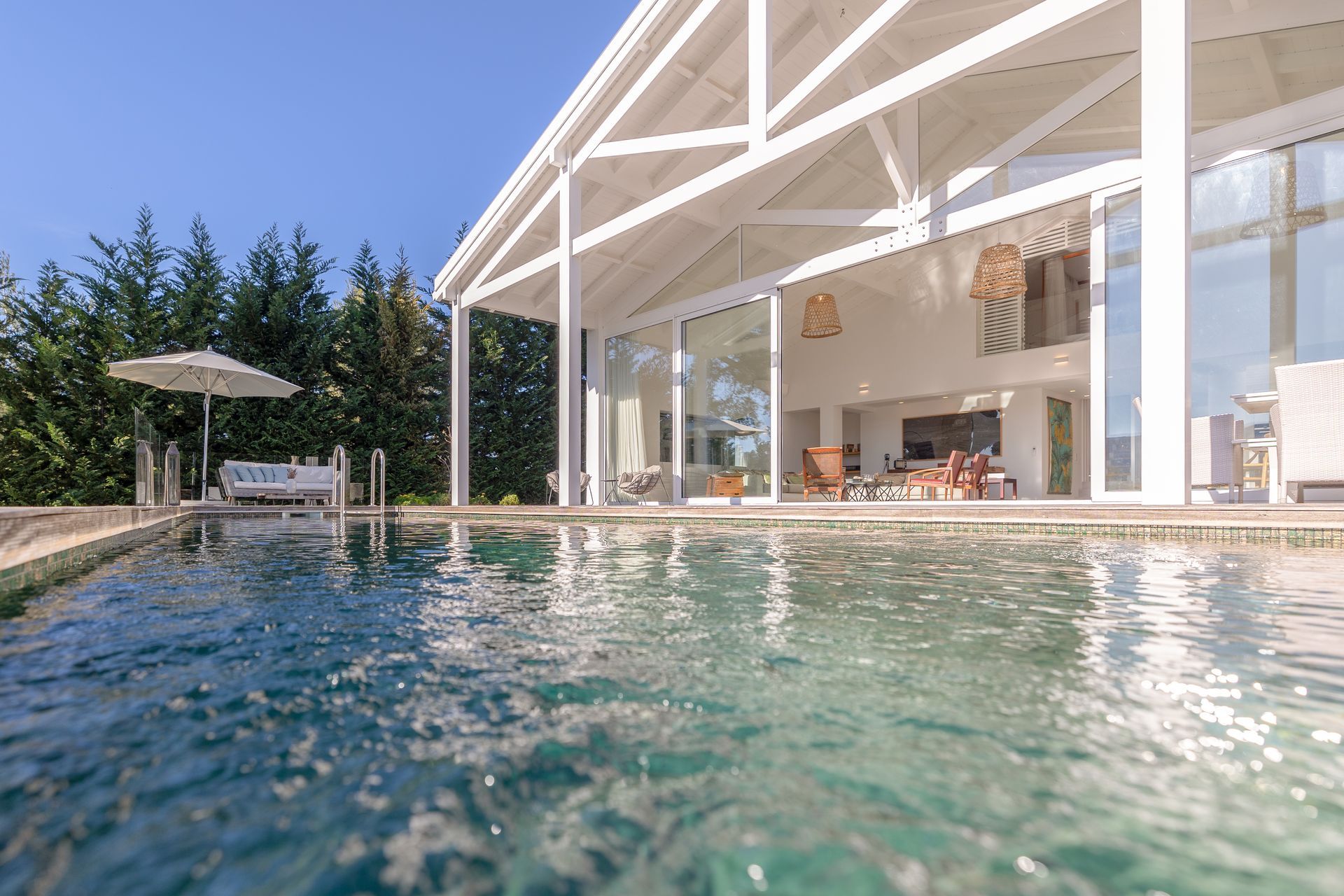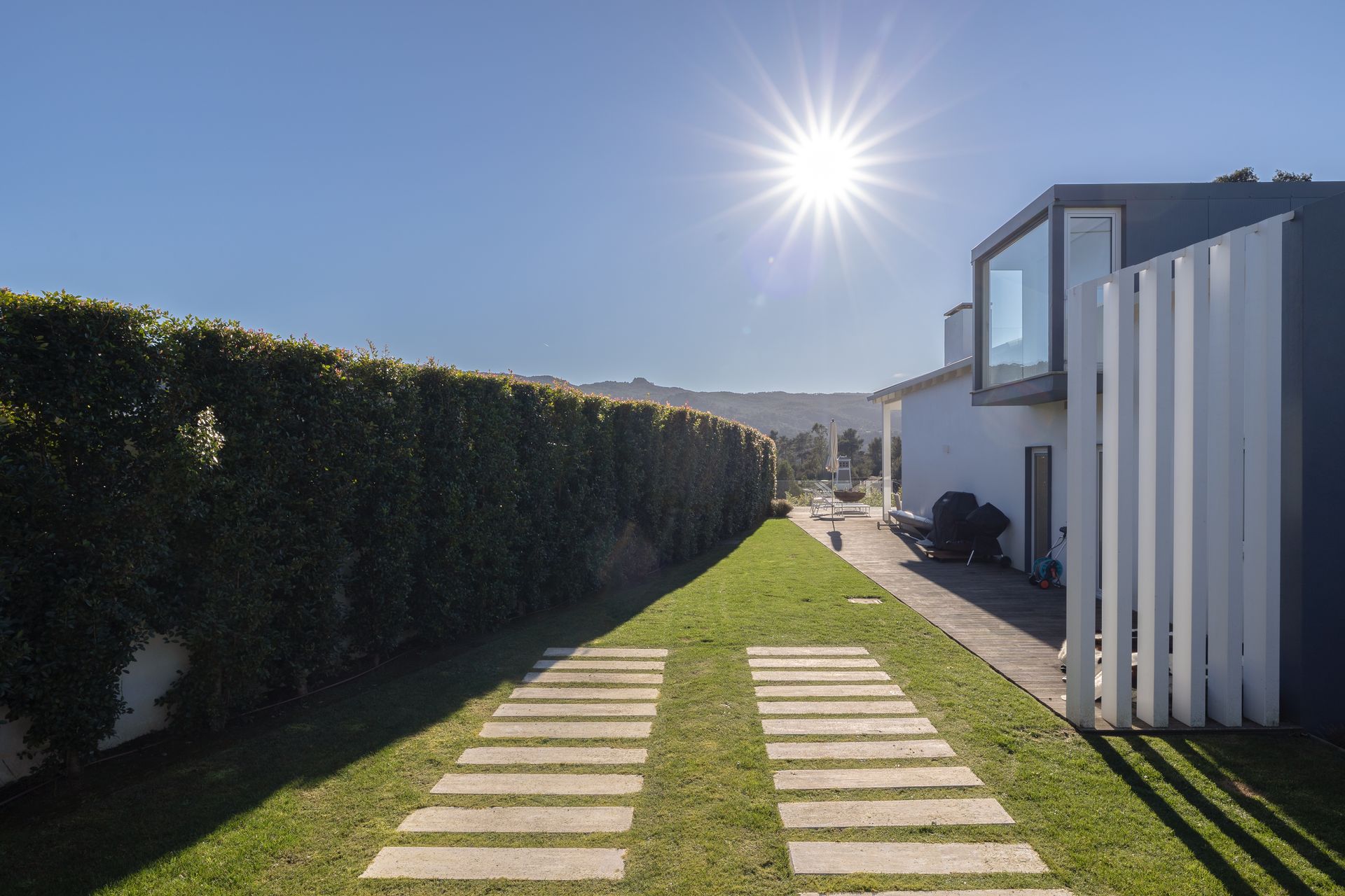 Moradia ao estilo moderno desenhada por arquiteto reconhecido na zona, Carlos Brandão, conhecido pelos chalês românticos e modernos de Sintra, assim como inúmeras moradias de revista na Comporta.